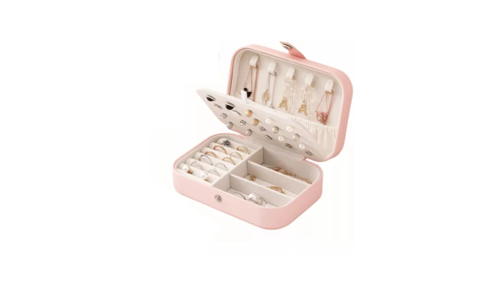 Un joyero de viaje mantiene mis accesorios organizados y protegidos, evitando que se pierdan o se enreden.